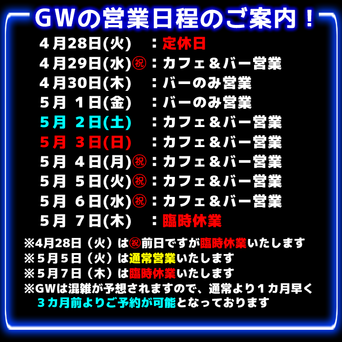 定休日:火曜日(ただし、火曜日が祝日の場合は通常営業とし、翌日の水曜日が臨時休業となります)